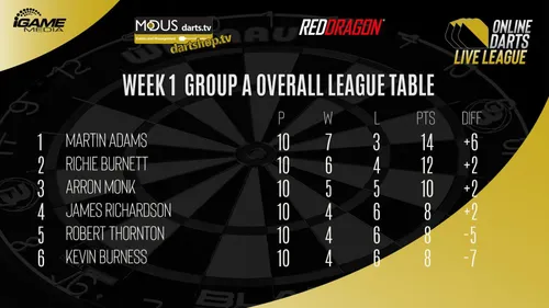 James Richardson (4-3) holte. Burnett liegt mit zwölf Punkten zwei Zähler hinter Adams, während Monk mit zehn Punkten ebenfalls noch geringe Chancen auf den Sieg in der Gruppenphase hat.