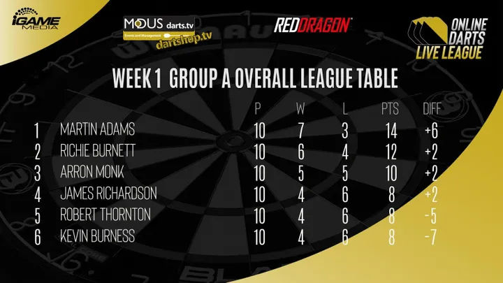 James Richardson (4-3) holte. Burnett liegt mit zwölf Punkten zwei Zähler hinter Adams, während Monk mit zehn Punkten ebenfalls noch geringe Chancen auf den Sieg in der Gruppenphase hat.