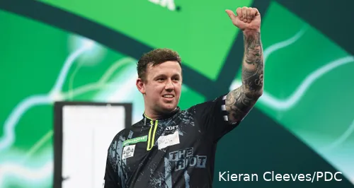 Dimitri Van den Bergh mit einem Average von 105 mit 4-0 besiegte und damit das Achtelfinale der PDC