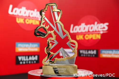 UK Open 2024 einen neuen Pokal überreichen. Kein billig aussehender Pokal mehr, sondern ein feines Kunstwerk des Juweliers und Goldschmieds Mike Shorer. Er arbeitet derzeit mit der PDC zusammen, um Trophäen und Auszeichnungen individuell zu gestalten.