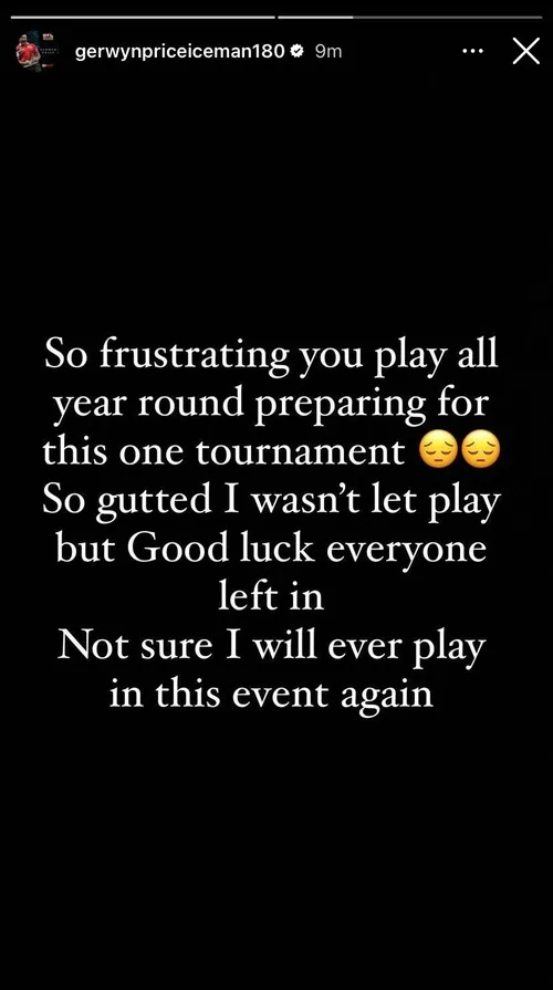 Price teilte wie üblich auf Instagram seine Frustration über die Niederlage gegen Clemens mit und sagte, er glaube nicht, dass er jemals wieder am Turnier teilnehmen werde, nachdem er nicht mitspielen durfte.