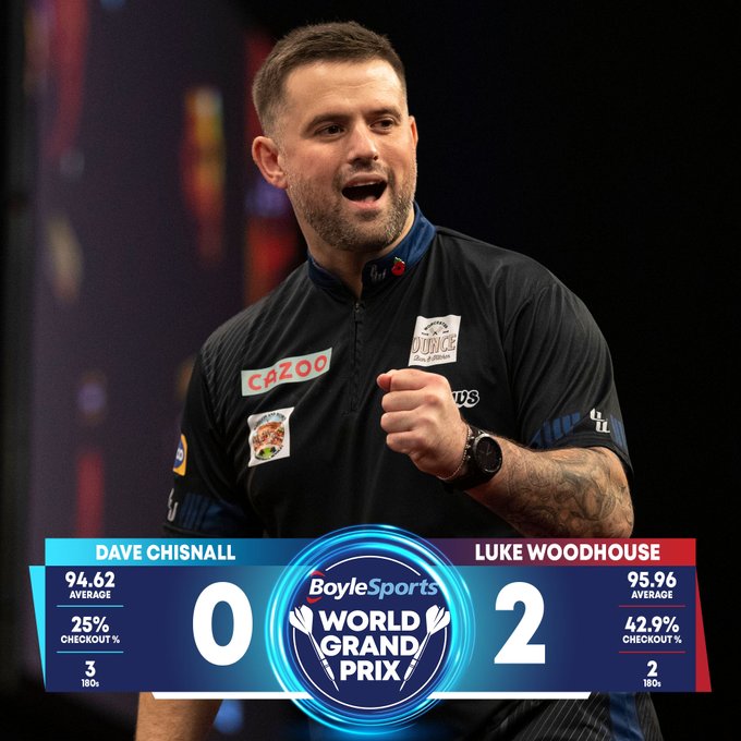 Woodhouse hingegen zeigte ein sehr sauberes Spiel mit einem Average von 96 und einer Doppelquote von 43 Prozent. Woody gewann 2-0 in Sätzen und eliminierte Chizzy.