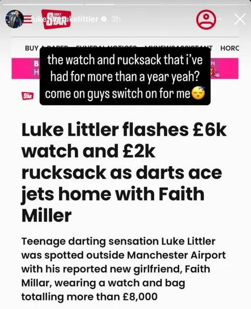 Doch Littler stellte klar, dass diese Gegenstände nicht neu seien: „Die Uhr und der Rucksack, die ich seit mehr als einem Jahr habe, ja“, kommentierte er sarkastisch. In Richtung der Presse fügte er hinzu: „Kommt schon Jungs, schaltet (euren Kopf) für mich ein.“ Eine klare Aufforderung, sich wieder auf das Wesentliche zu konzentrieren: den Dartsport.