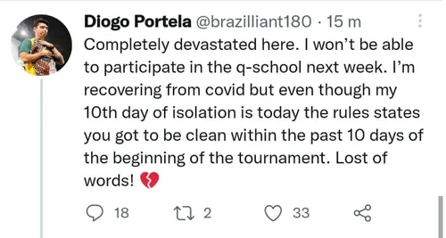 Q-School teilnehmen. Der Brasilianer wurde kürzlich positiv auf das Coronavirus getestet und dachte, er müsse seine Teilnahme absagen.