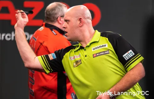 Michael van Gerwen vs. Stephen Bunting – Heimspiel mit Stolperpotenzial Michael van Gerwen steht unter Druck – auch wenn es auf den ersten Blick nicht so aussieht. Mit 15 Punkten liegt Mighty Mike zwar gut im Rennen, doch die Legbilanz bringt ihn in Gefahr, aus den Top Vier zu rutschen. Zwar gewinnt der Niederländer fast jedes Viertelfinale, doch danach ist oft Schluss: Nur ein einziges Mal erreichte er bislang ein Finale.