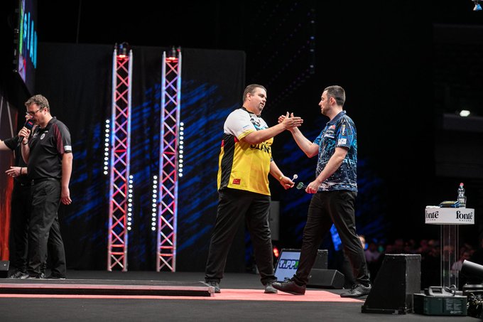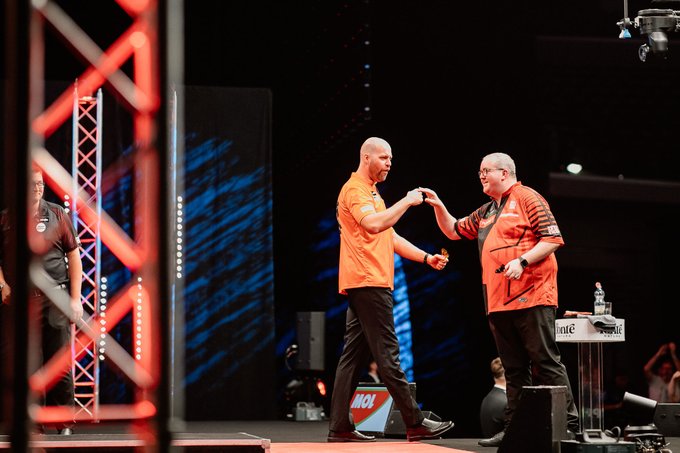 Im vierten Spiel des Nachmittags stehen sich Danny Noppert und Gian van Veen gegenüber. Noppert gewann in der zweiten Runde mit 6-4 gegen Nathan Aspinall, während van Veen sich mit Keane Barry (6-4) auseinandersetzen musste. Die beiden Niederländer sind in diesem Jahr bereits dreimal aufeinander getroffen; zweimal gewann Noppert, einmal ging der Sieg an van Veen.