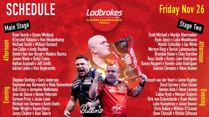 Dimitri van den Bergh, der wegen eines positiven Coronatests nicht beim Grand Slam teilnehmen konnte, wird auf Madars Razma treffen. Martijn Kleermaker wird am Nachmittag auf der zweiten Bühne gegen Scott Mitchell spielen.